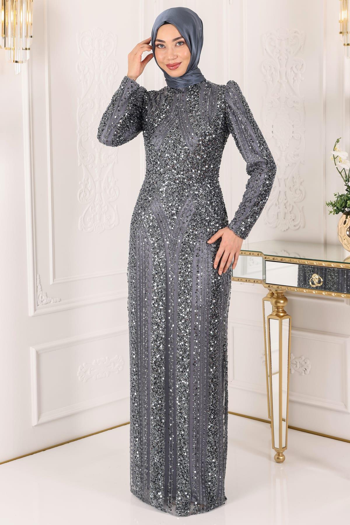Ahsen Tesettür Abiye Antrasit