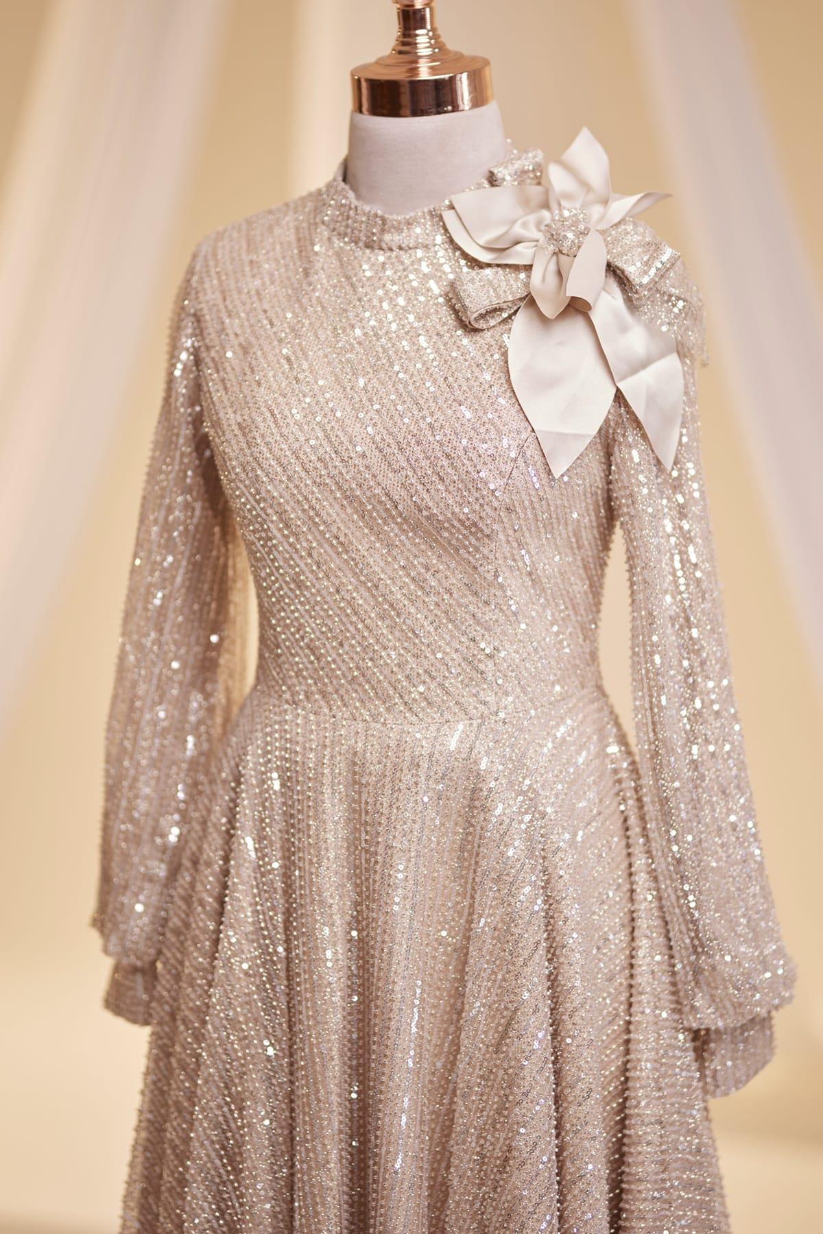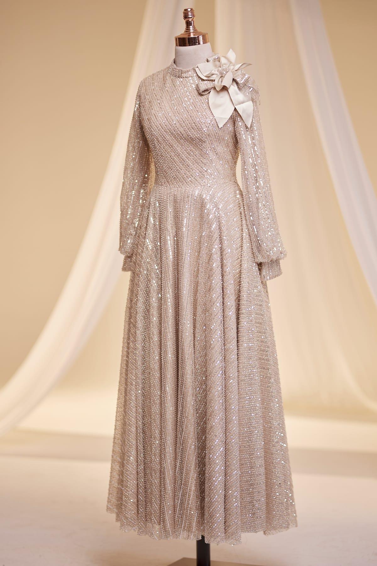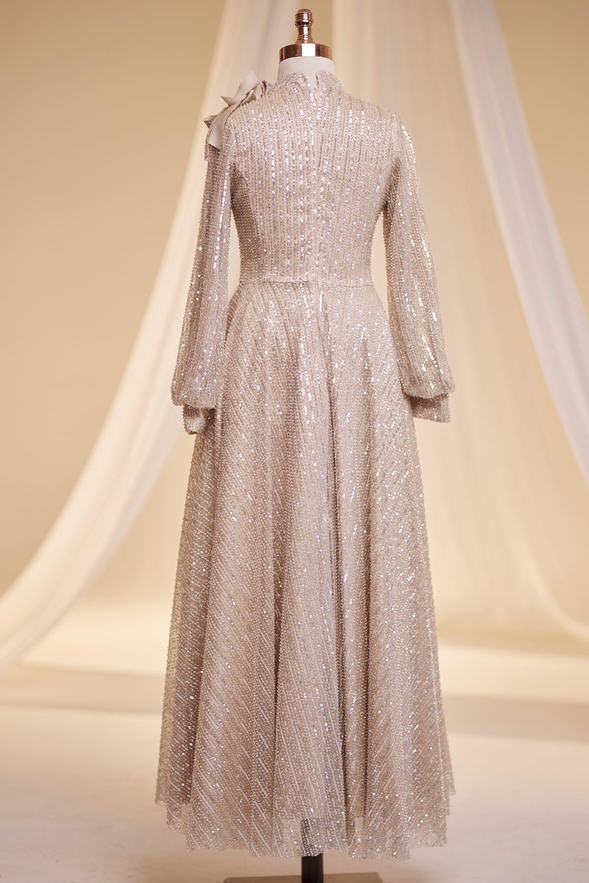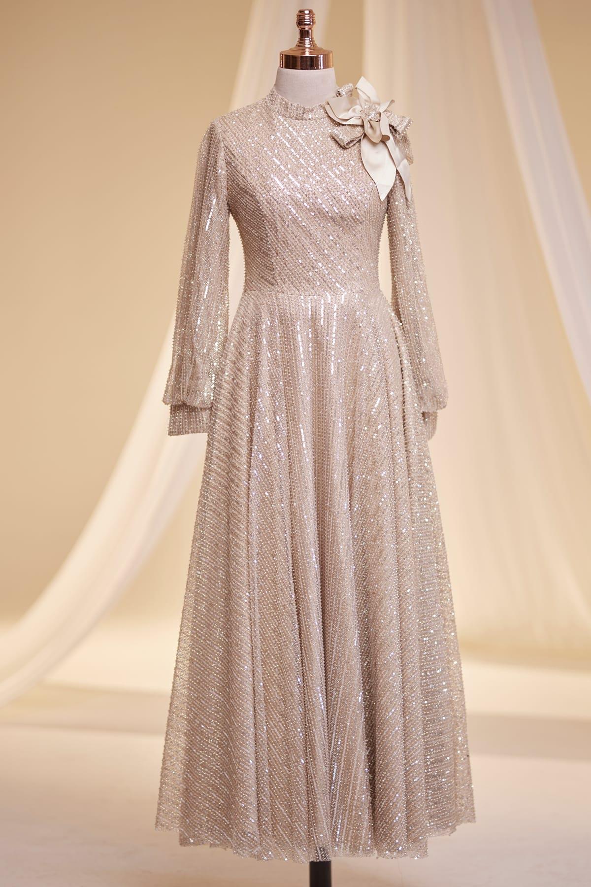 Bukle Tesettür Abiye Gold