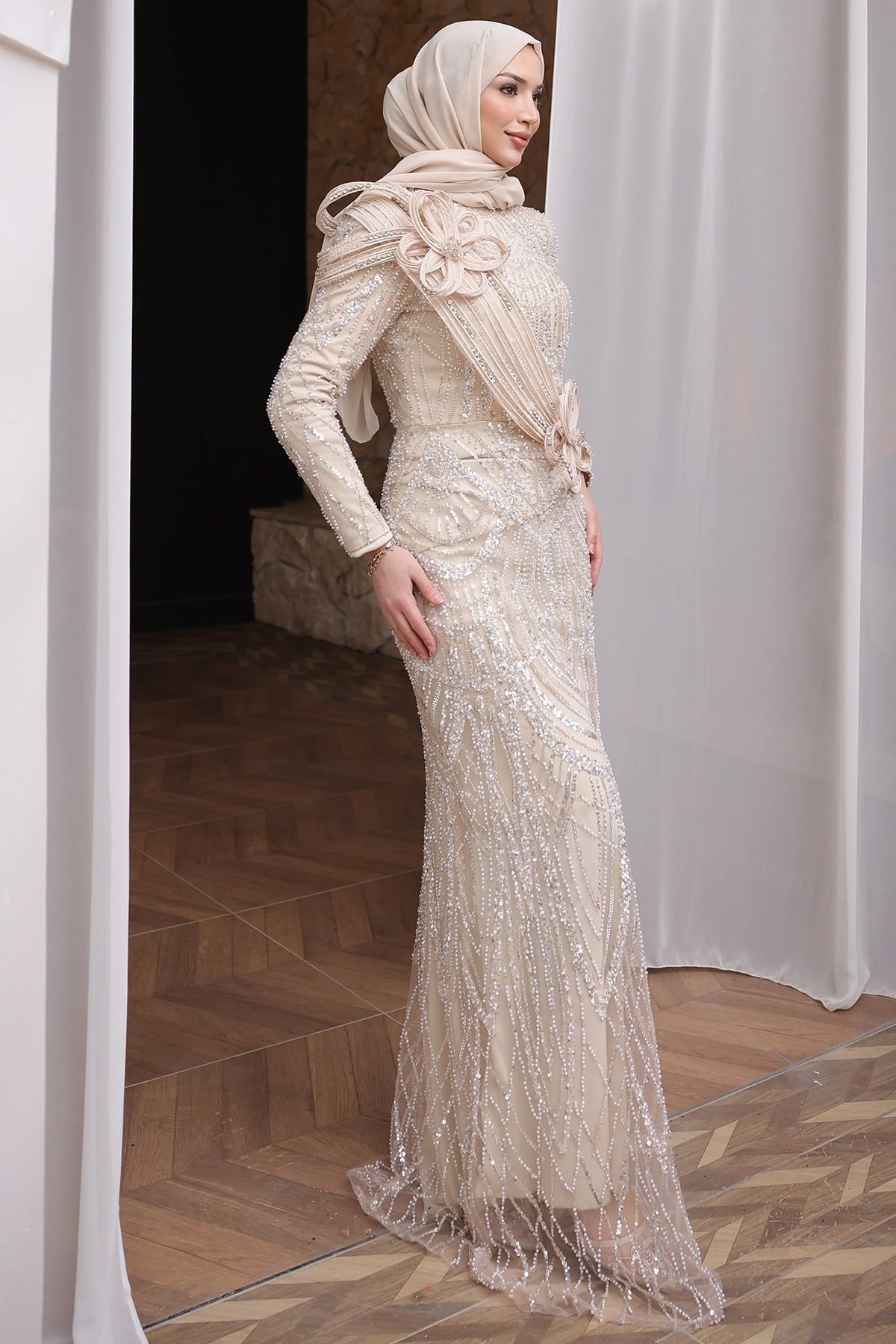 Ceylan Tesettür Abiye Bej