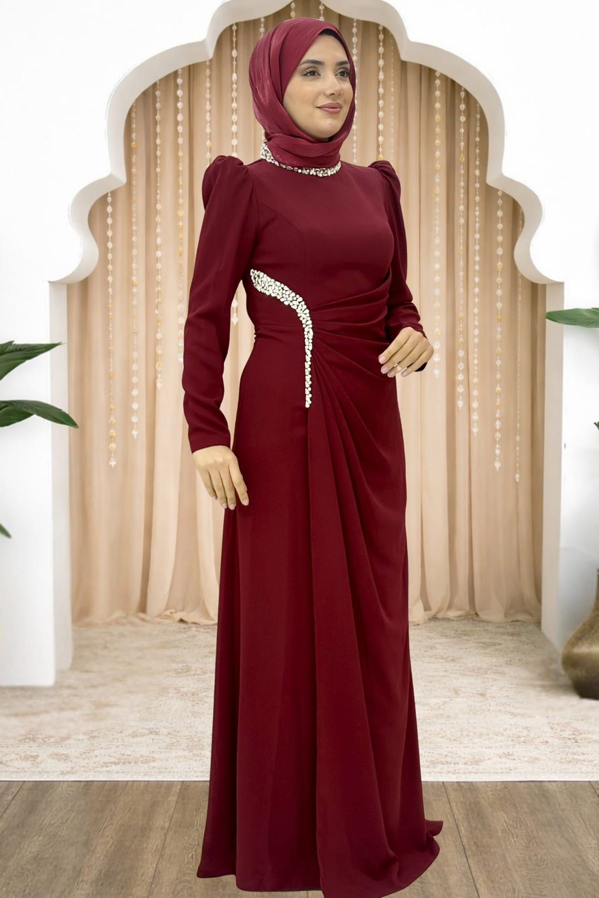 Dilem Tesettür Abiye Bordo