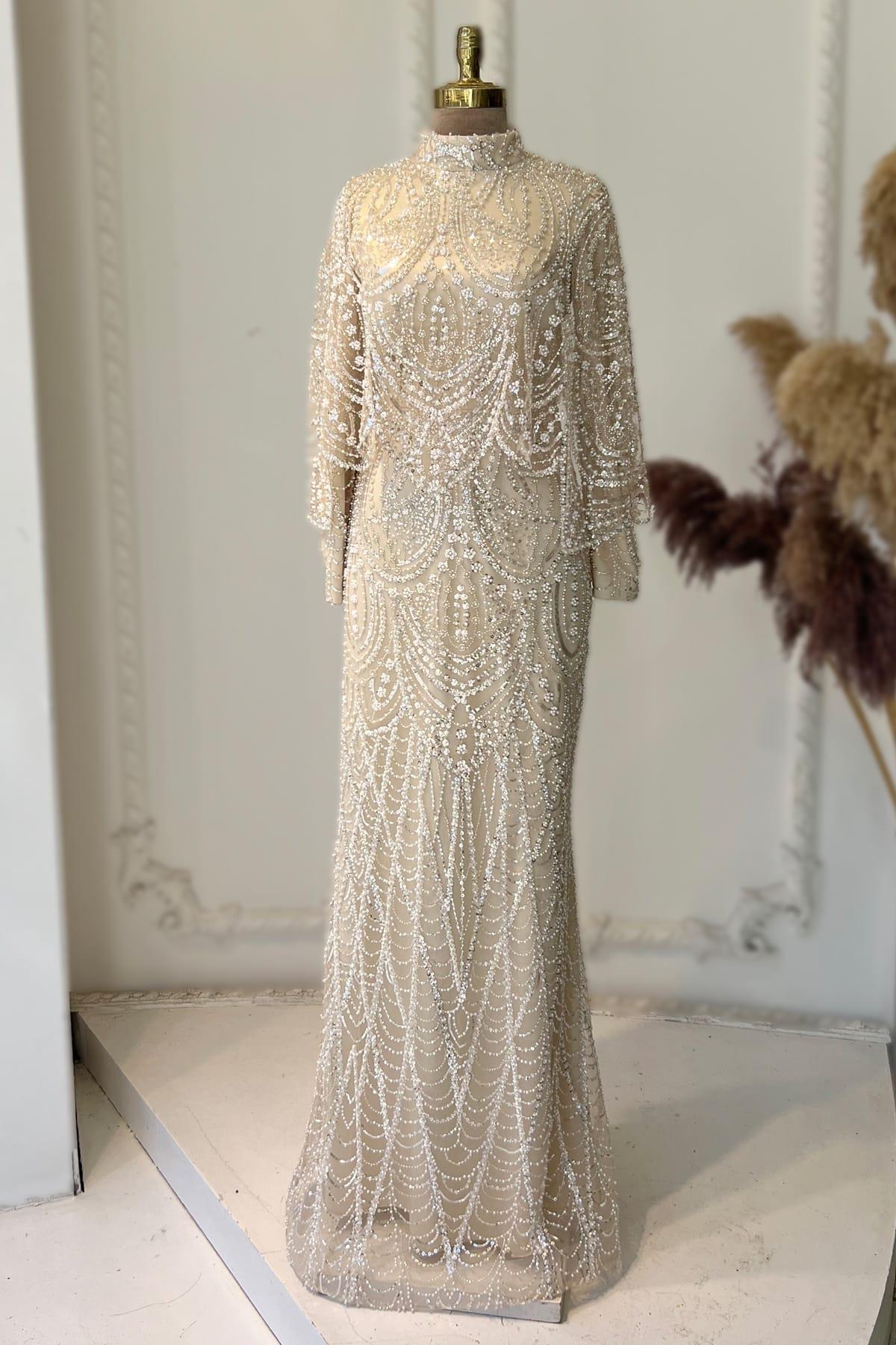 Diva Tesettür Abiye Bej