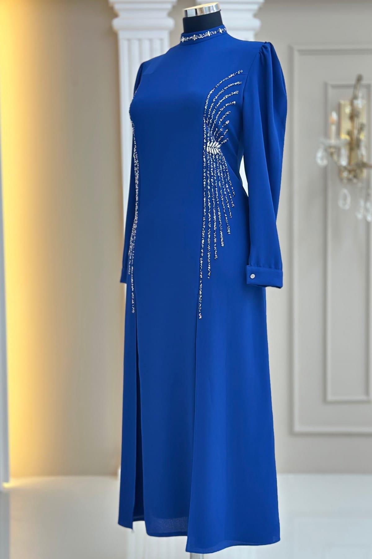 Duru Tesettür Abiye İndigo