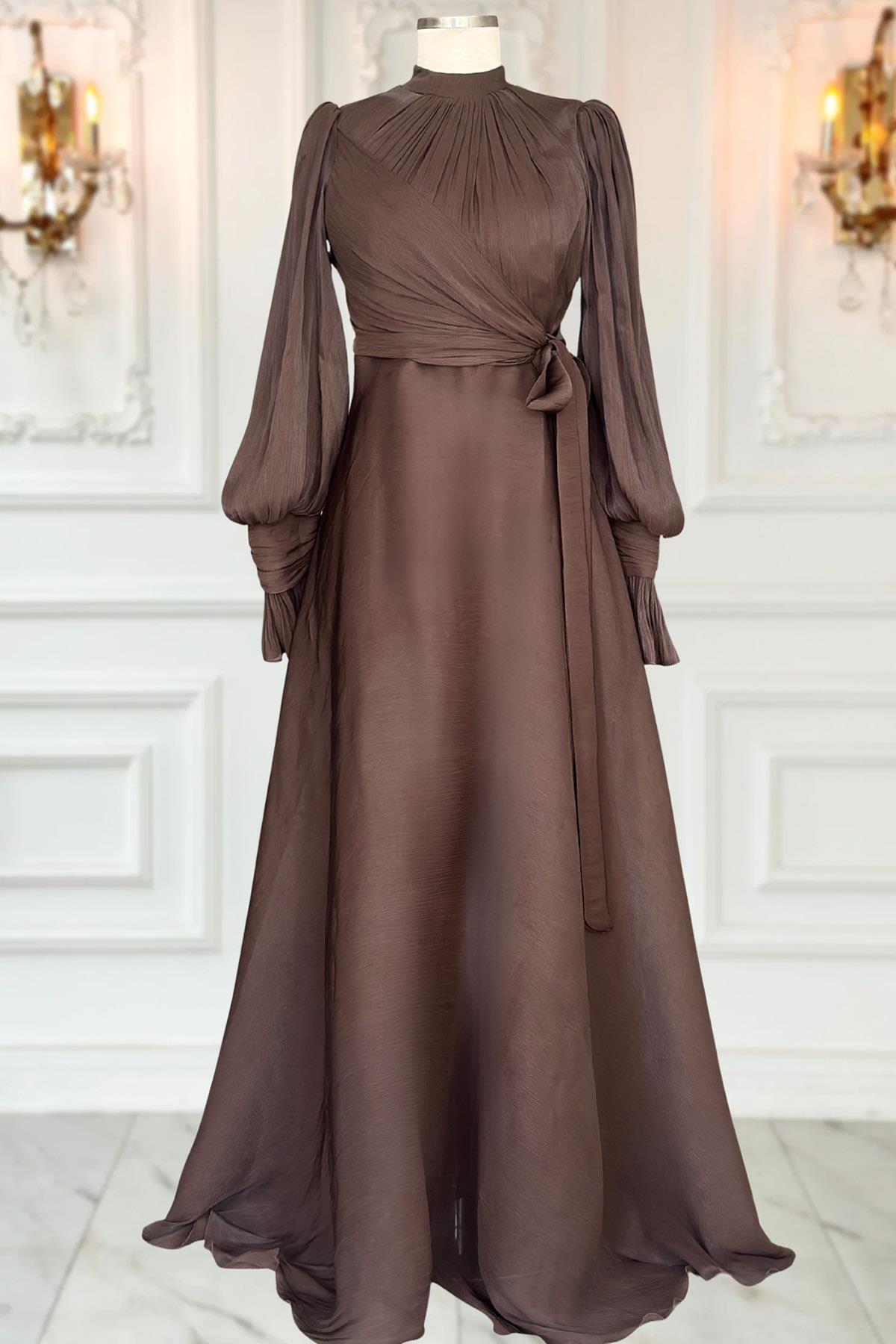 Efruz Tesettür Abiye Kahverengi