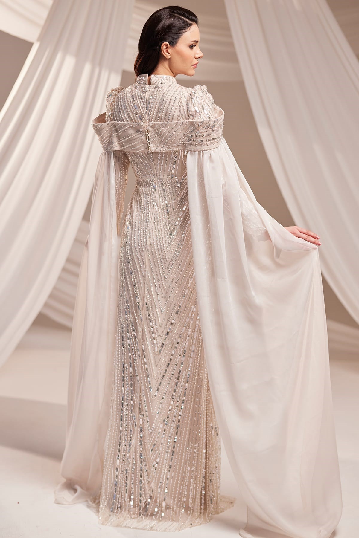 Elmas Tesettür Abiye Bej