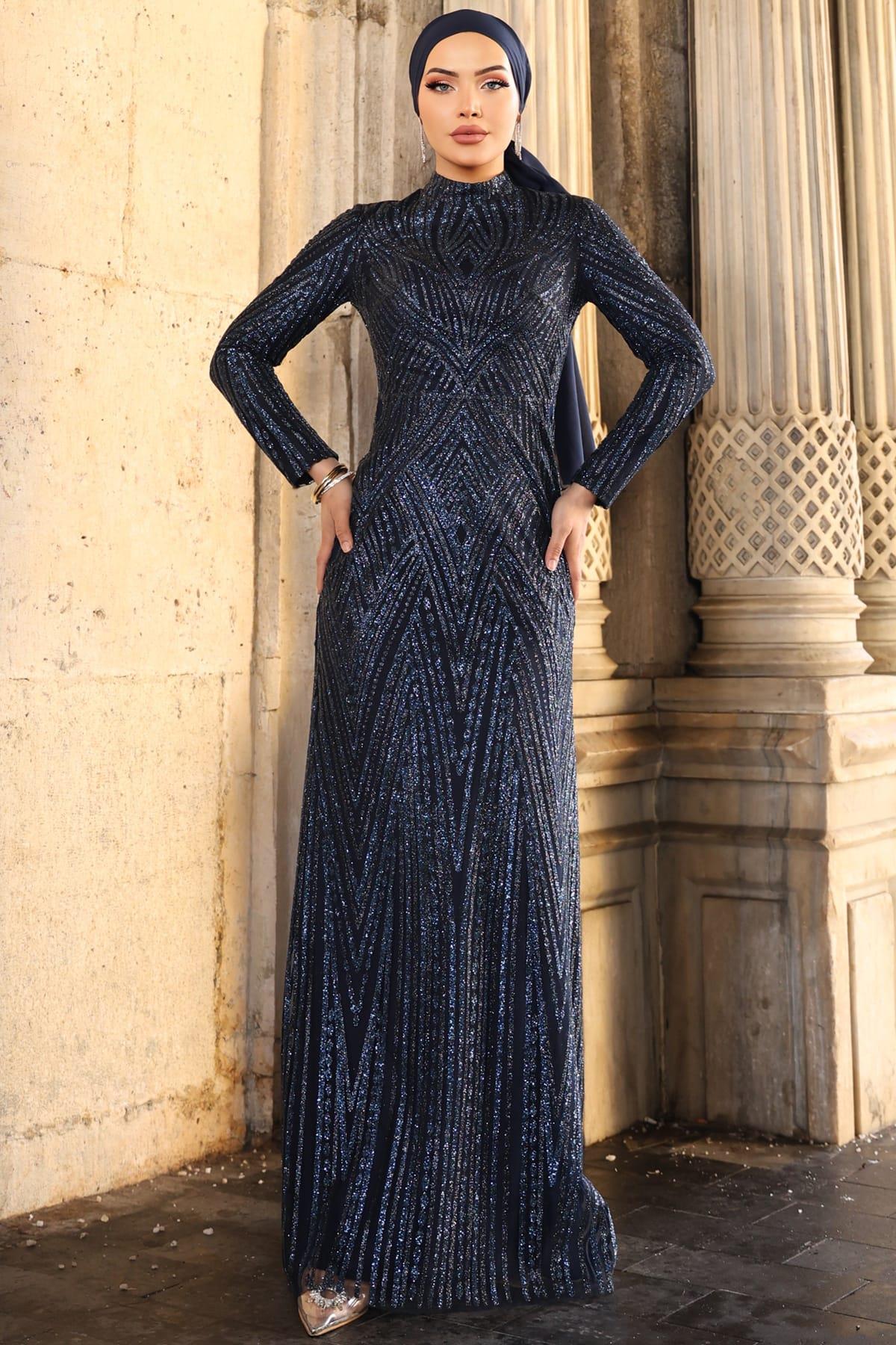 Gala Tesettür Abiye Lacivert