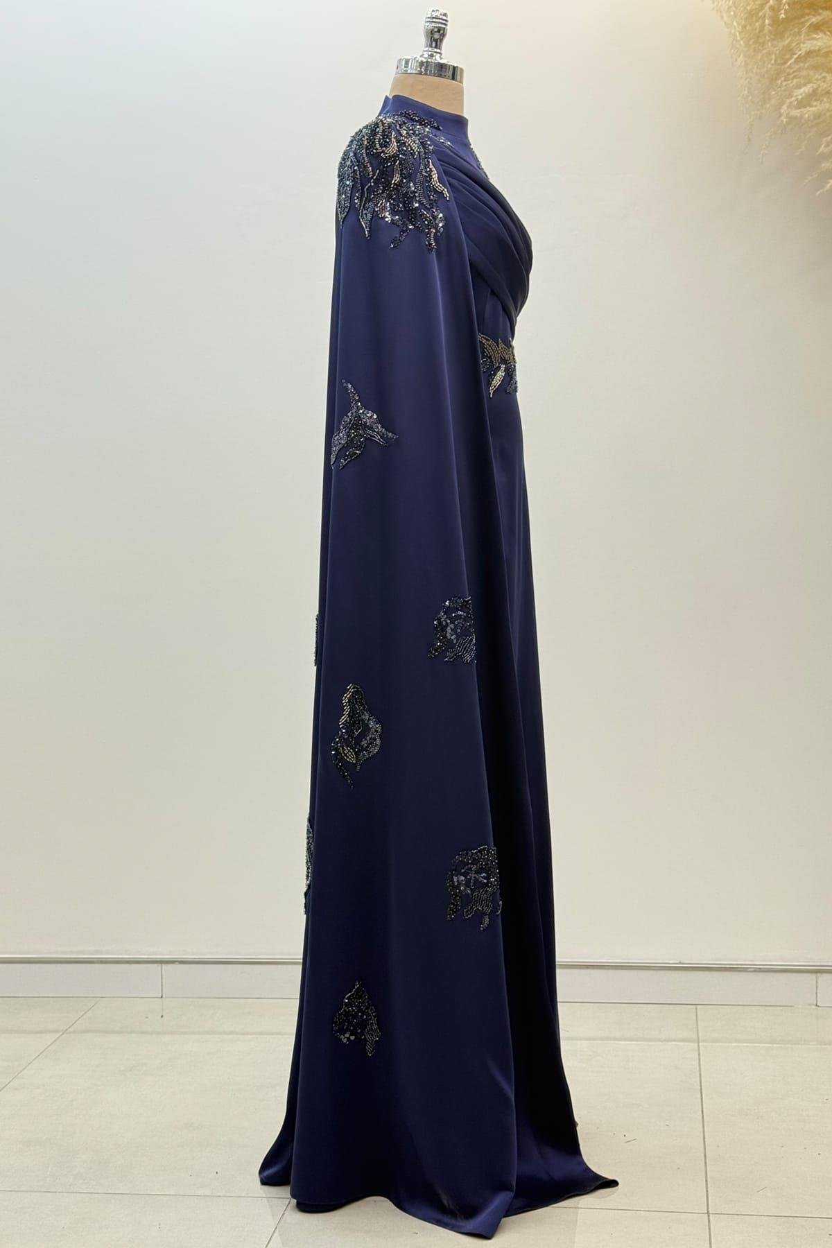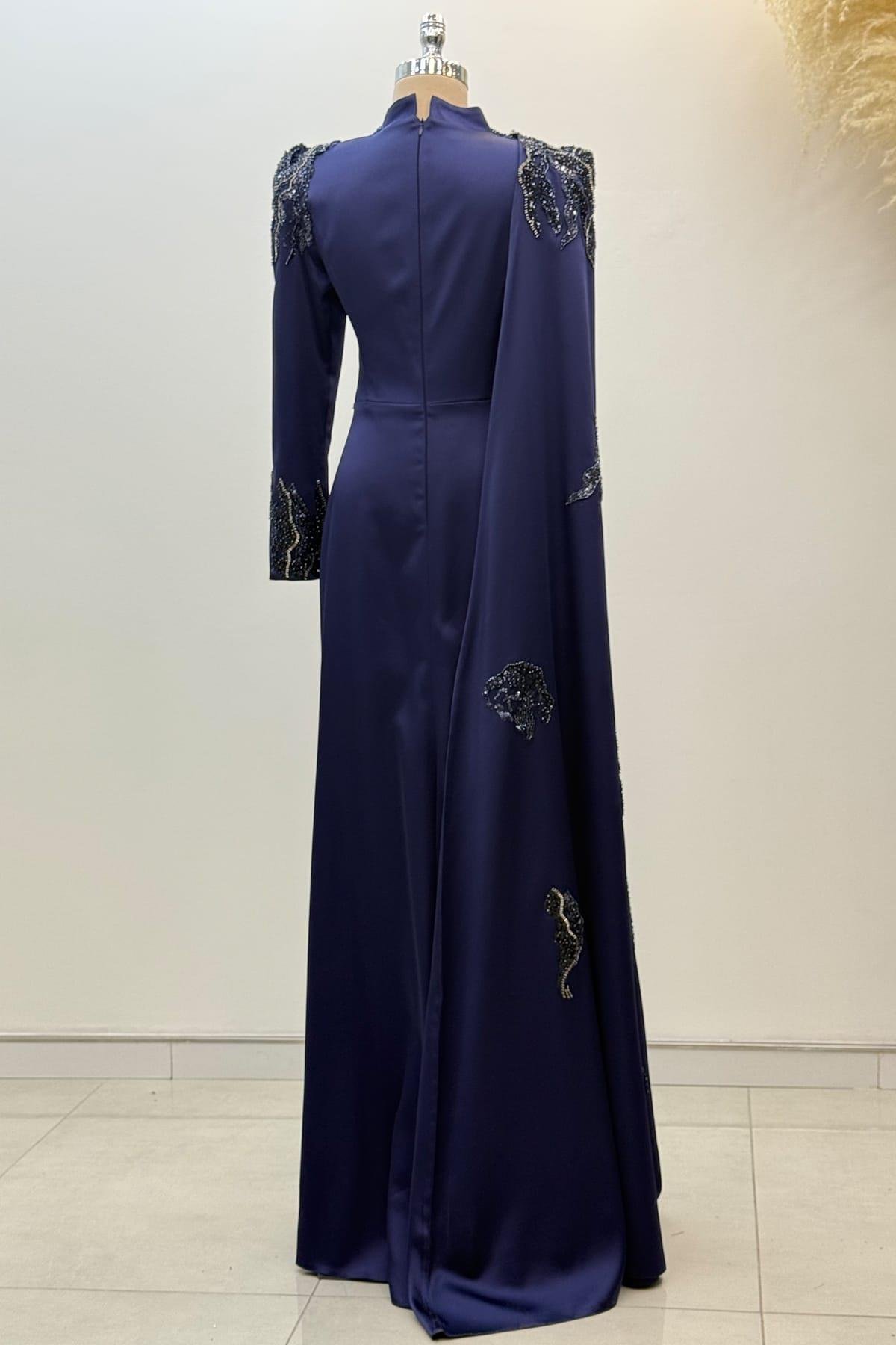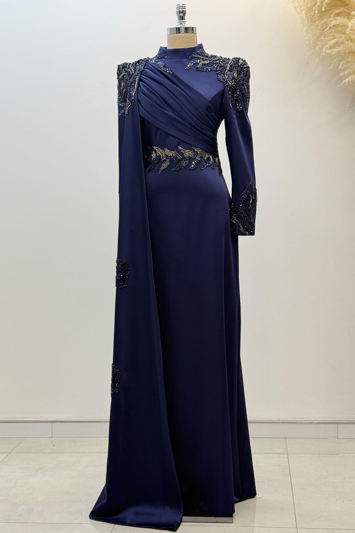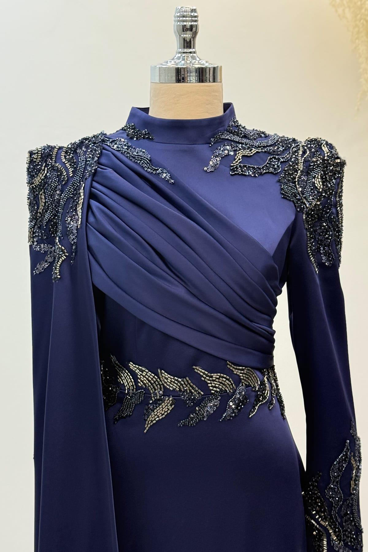 Garnili Tesettür Abiye Lacivert