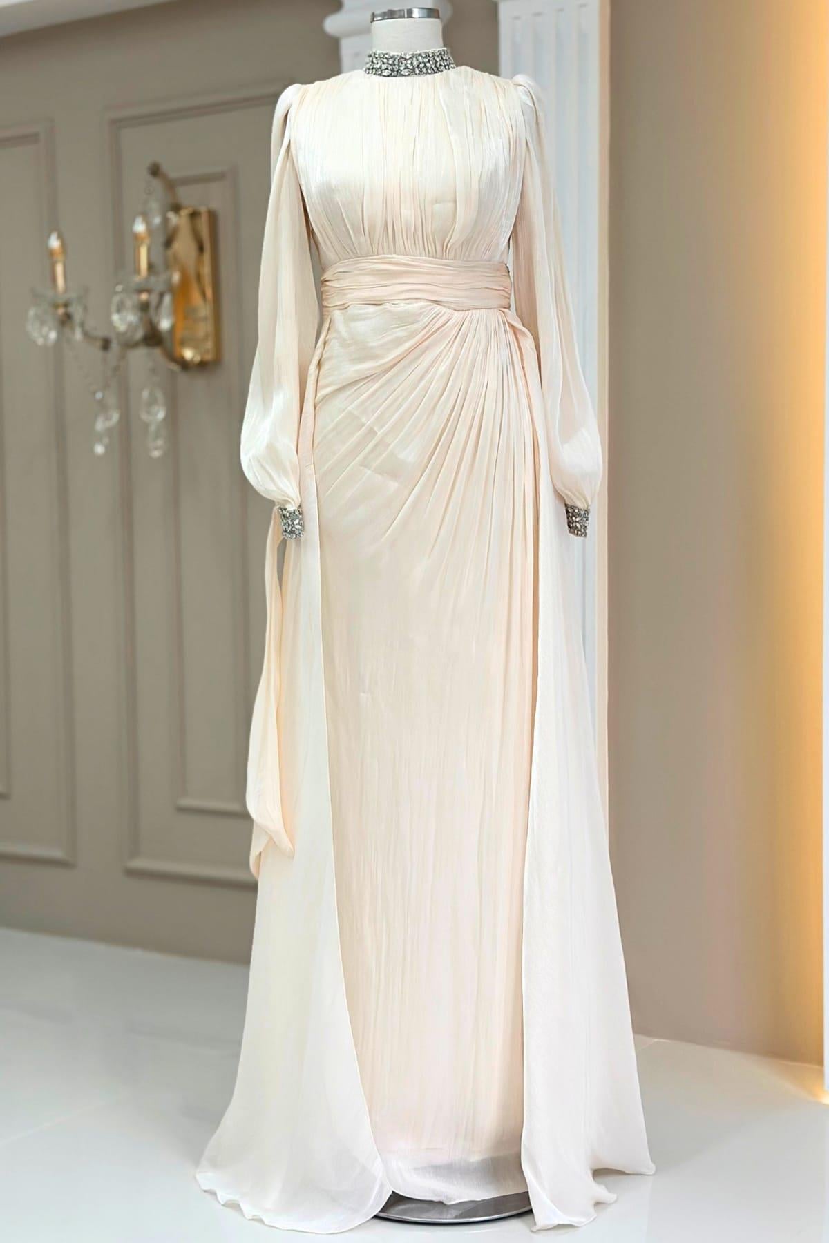 Gözde Tesettür Abiye Krem