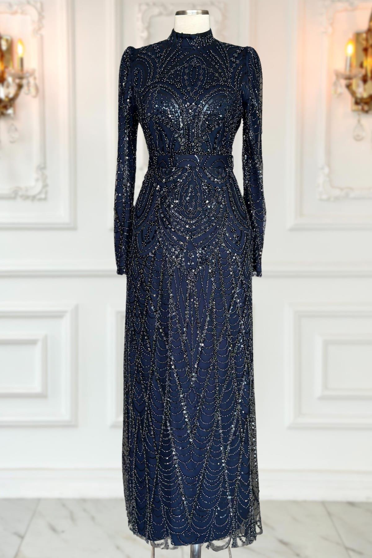 Gülce Tesettür Abiye Lacivert