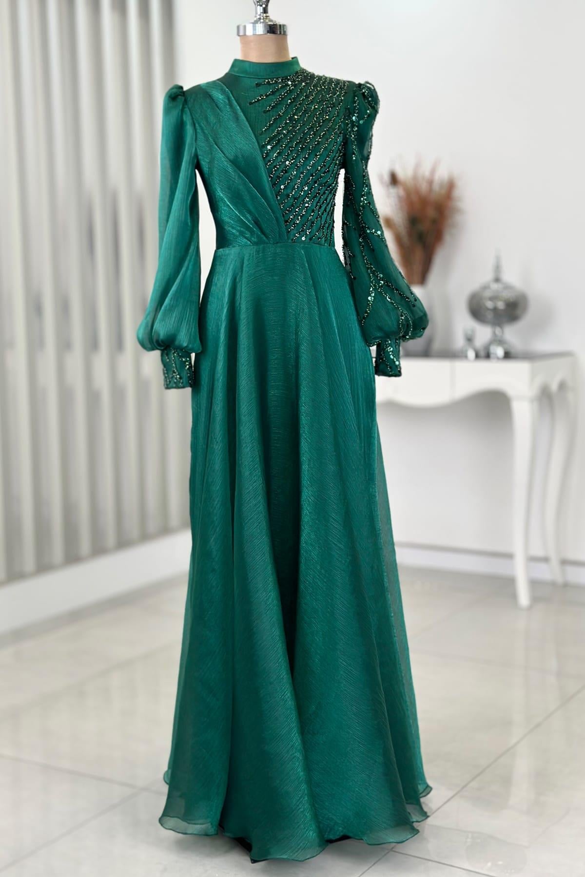 Güneş Tesettür Abiye Zümrüt