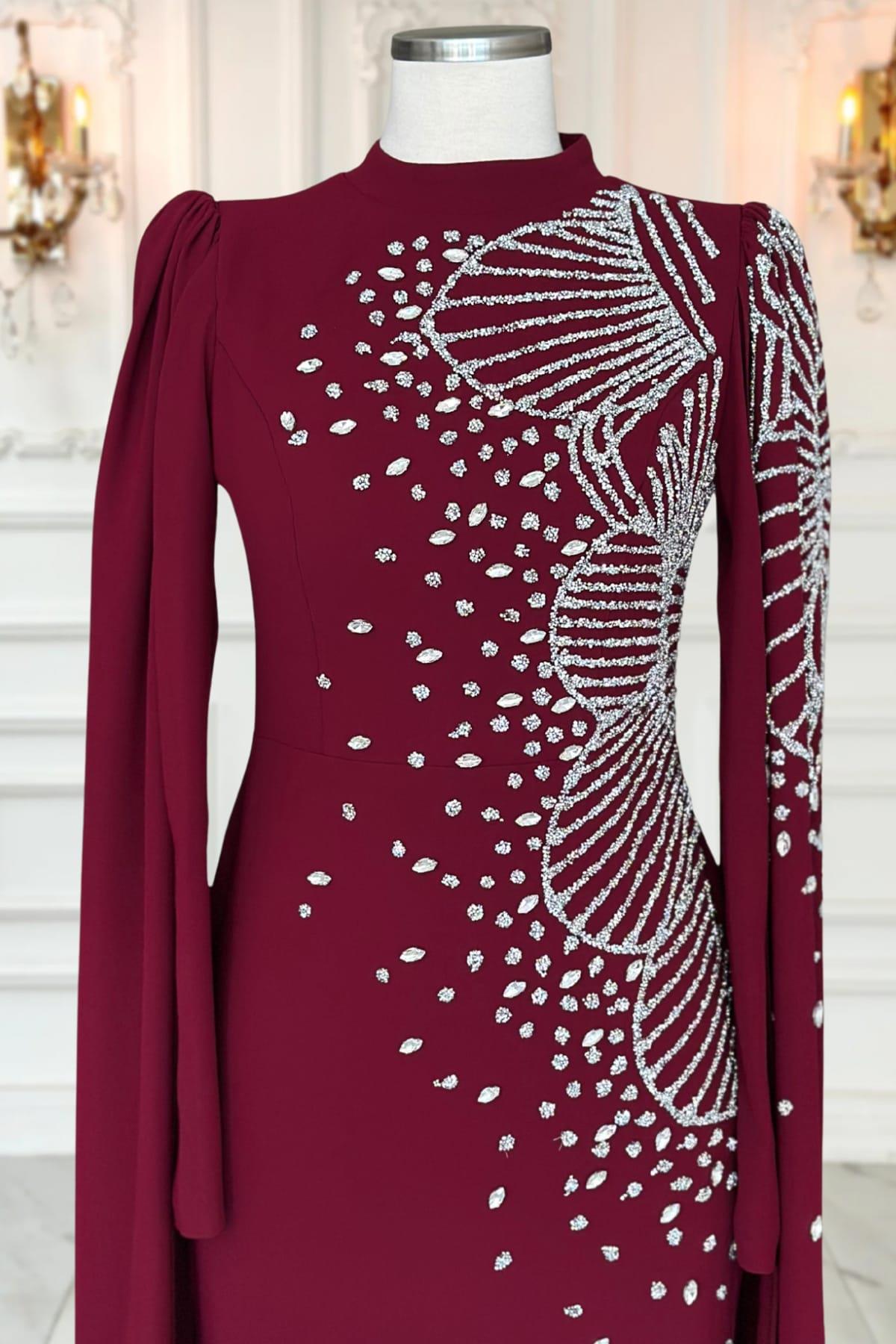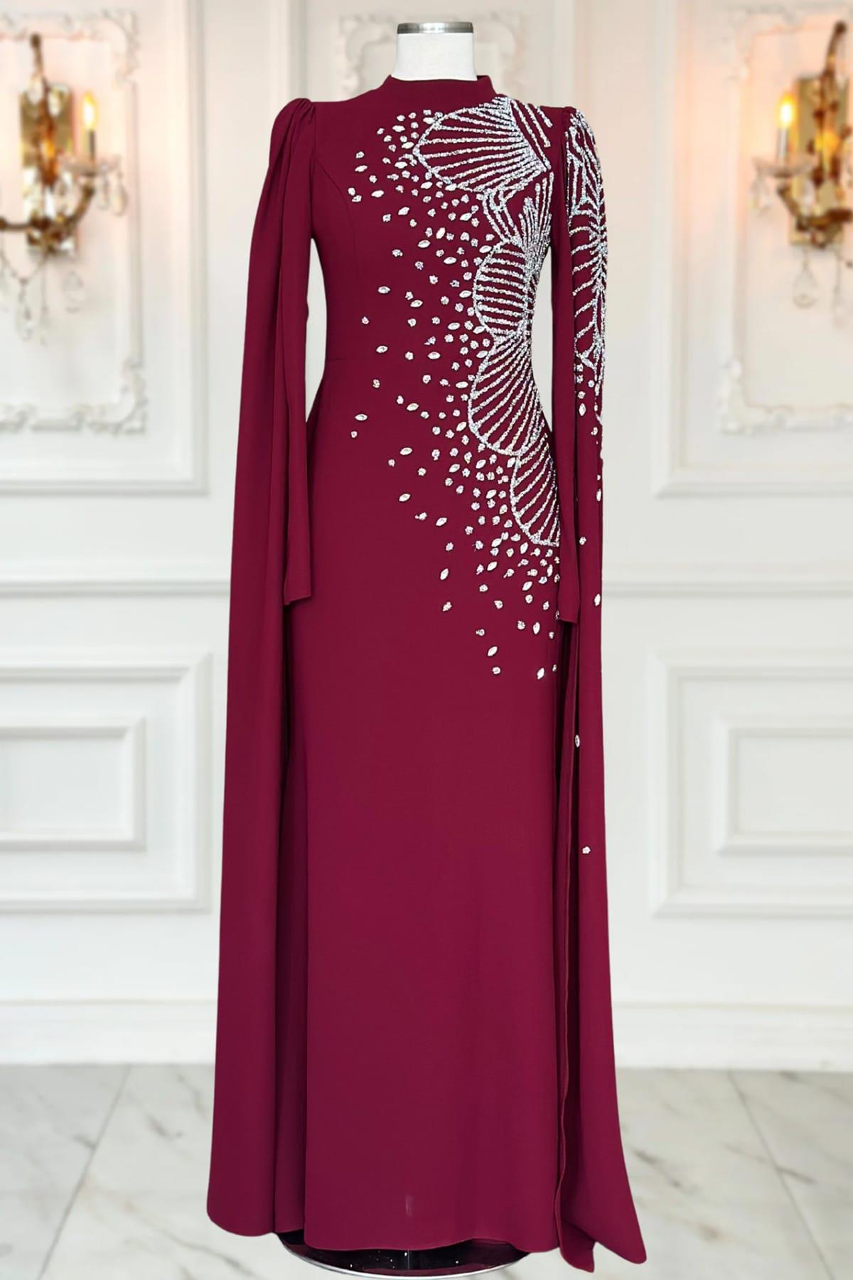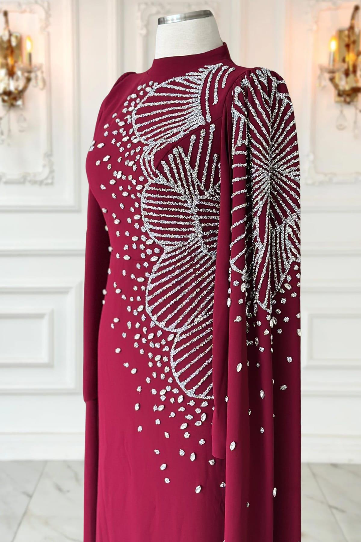Hüsna Tesettür Abiye Bordo