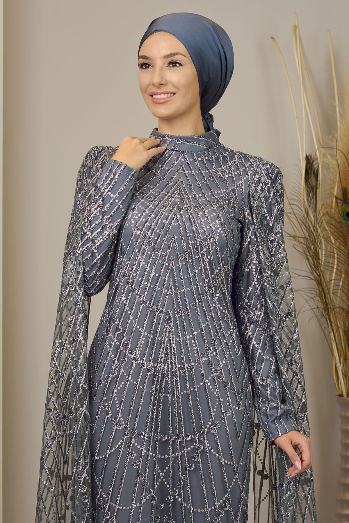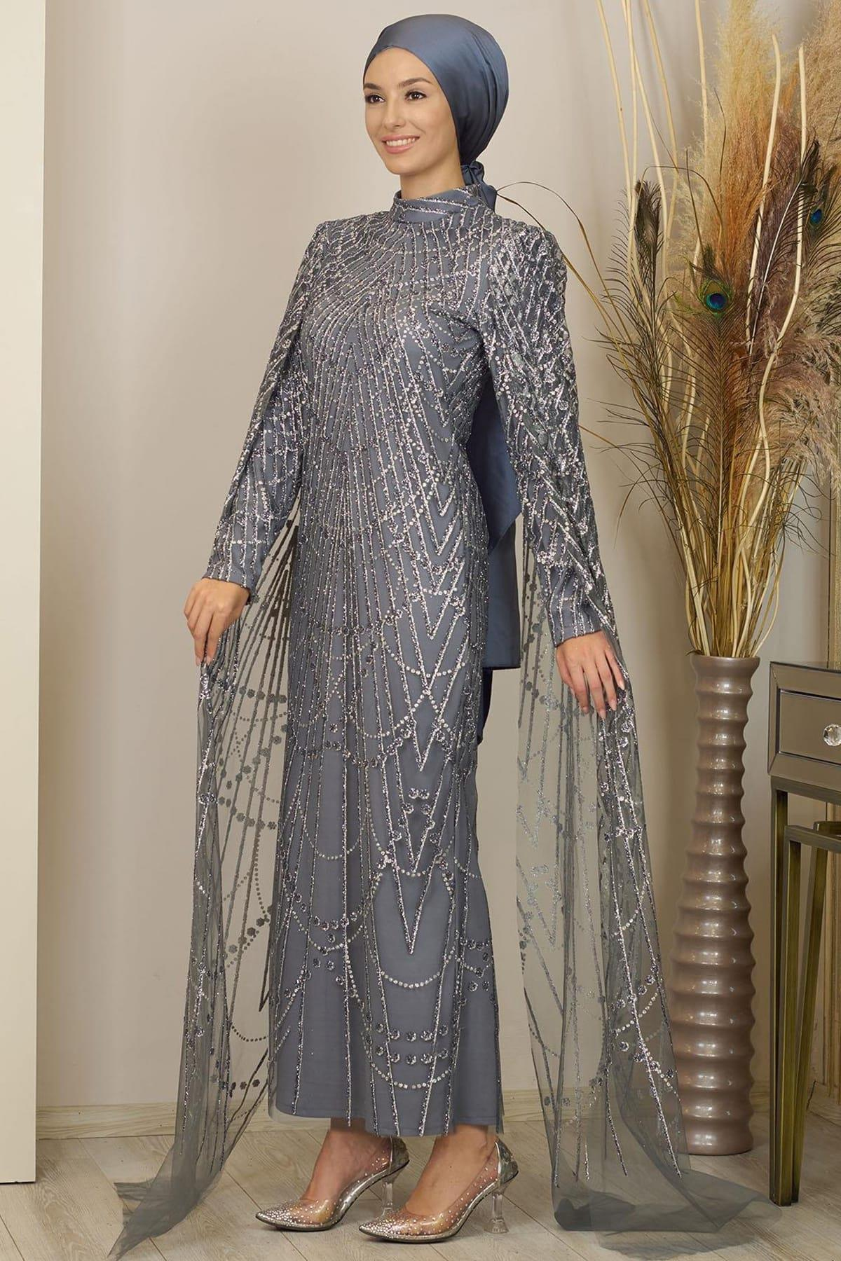 Irmak Tesettür Abiye Gri