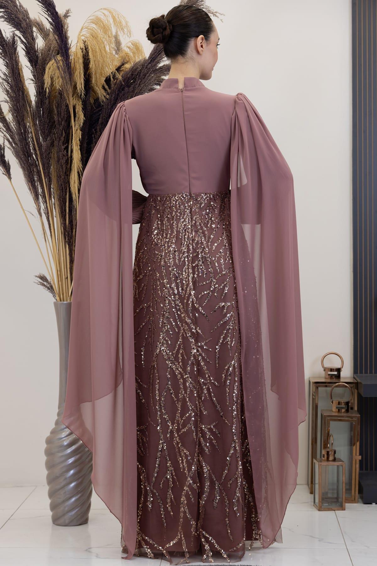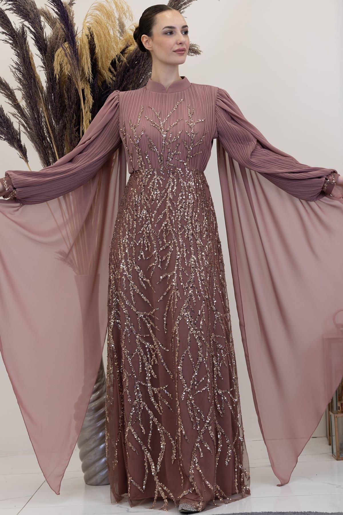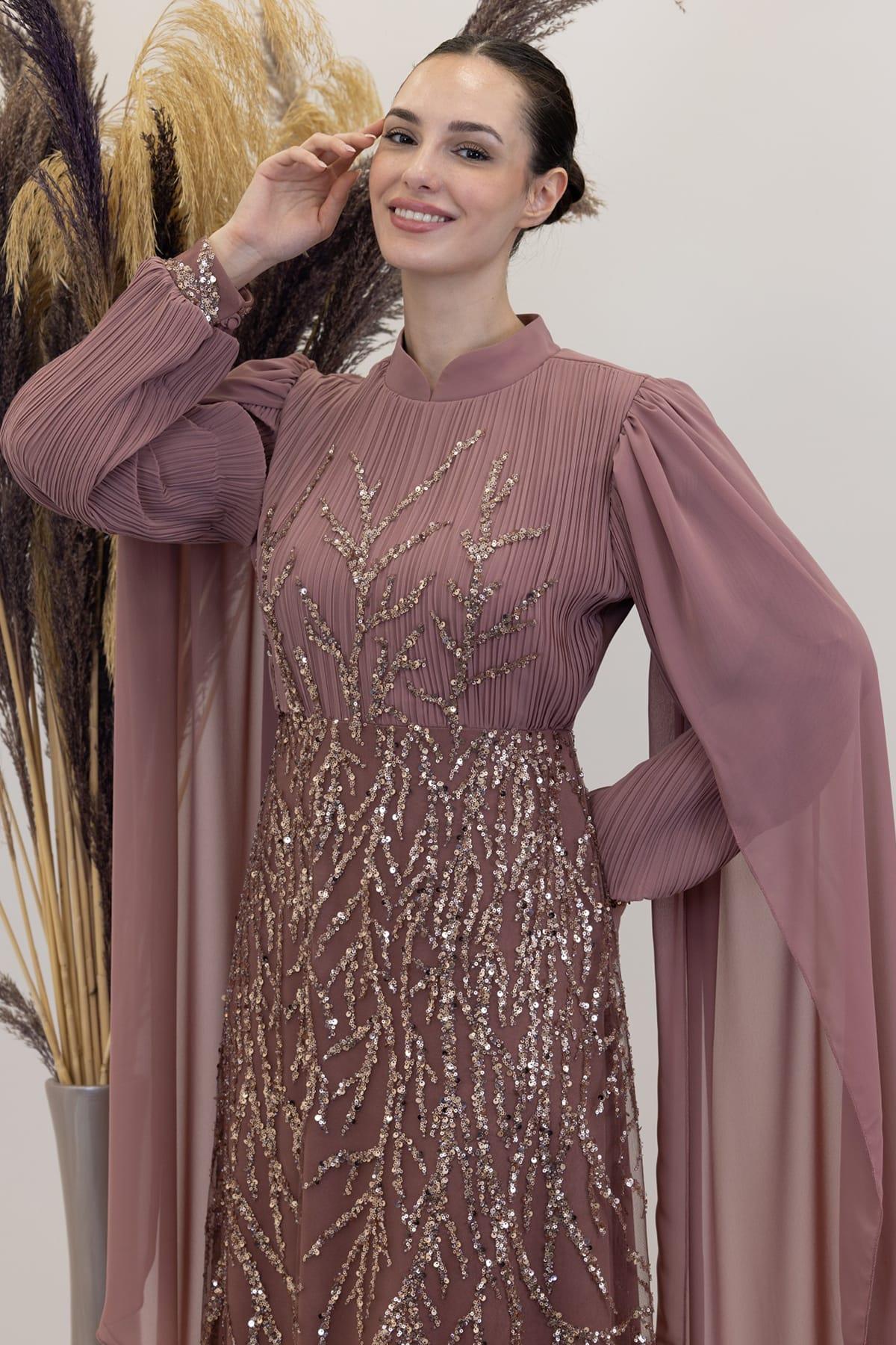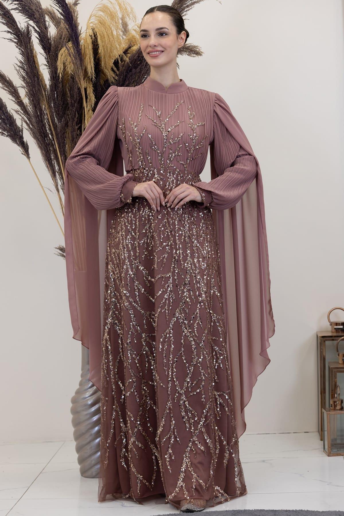 Kolları Pelerinli Ezgi Tesettür Abiye Gül Kurusu