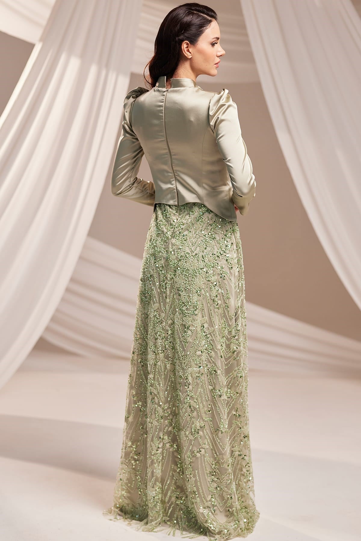 Liora Tesettür Abiye Haki