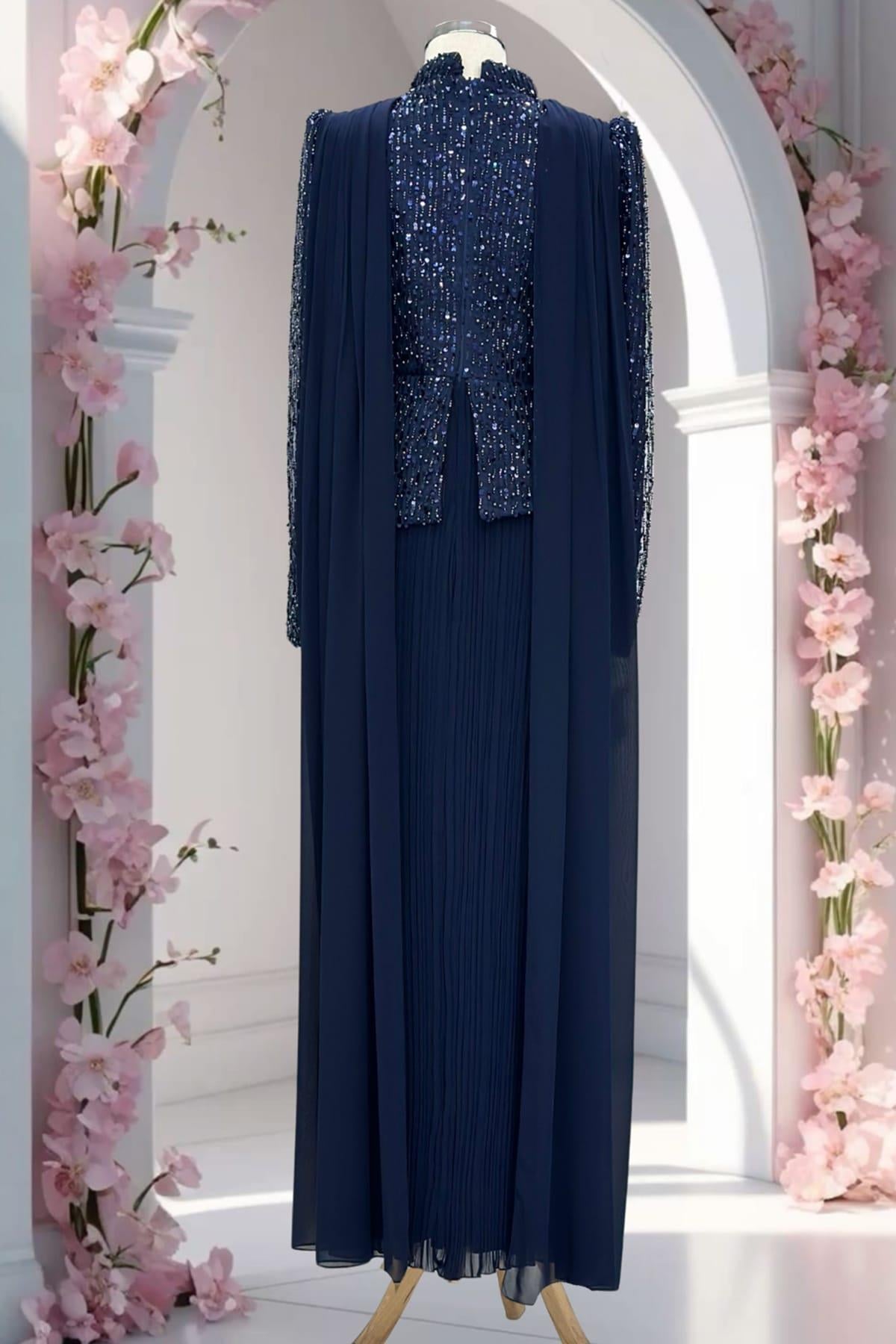 Masal Tesettür Abiye Lacivert