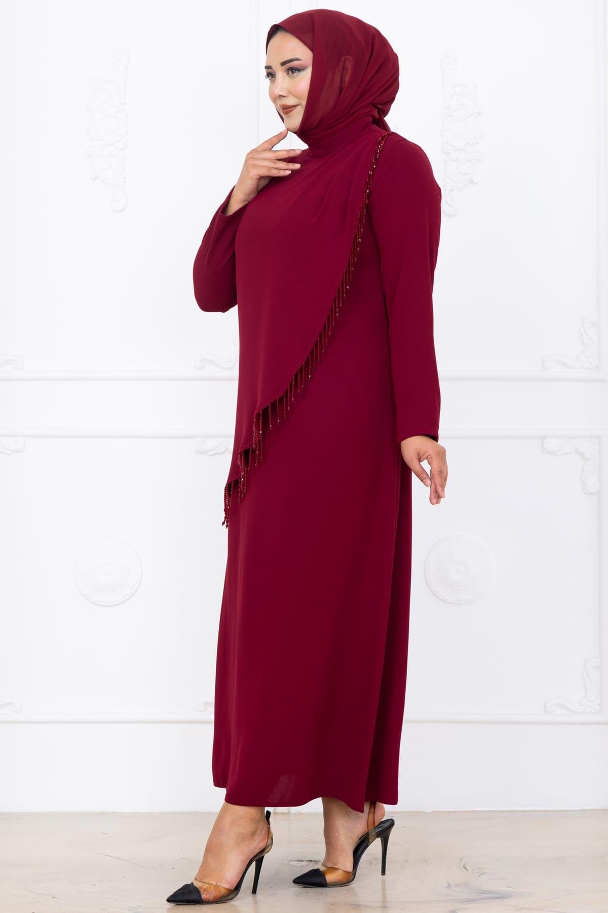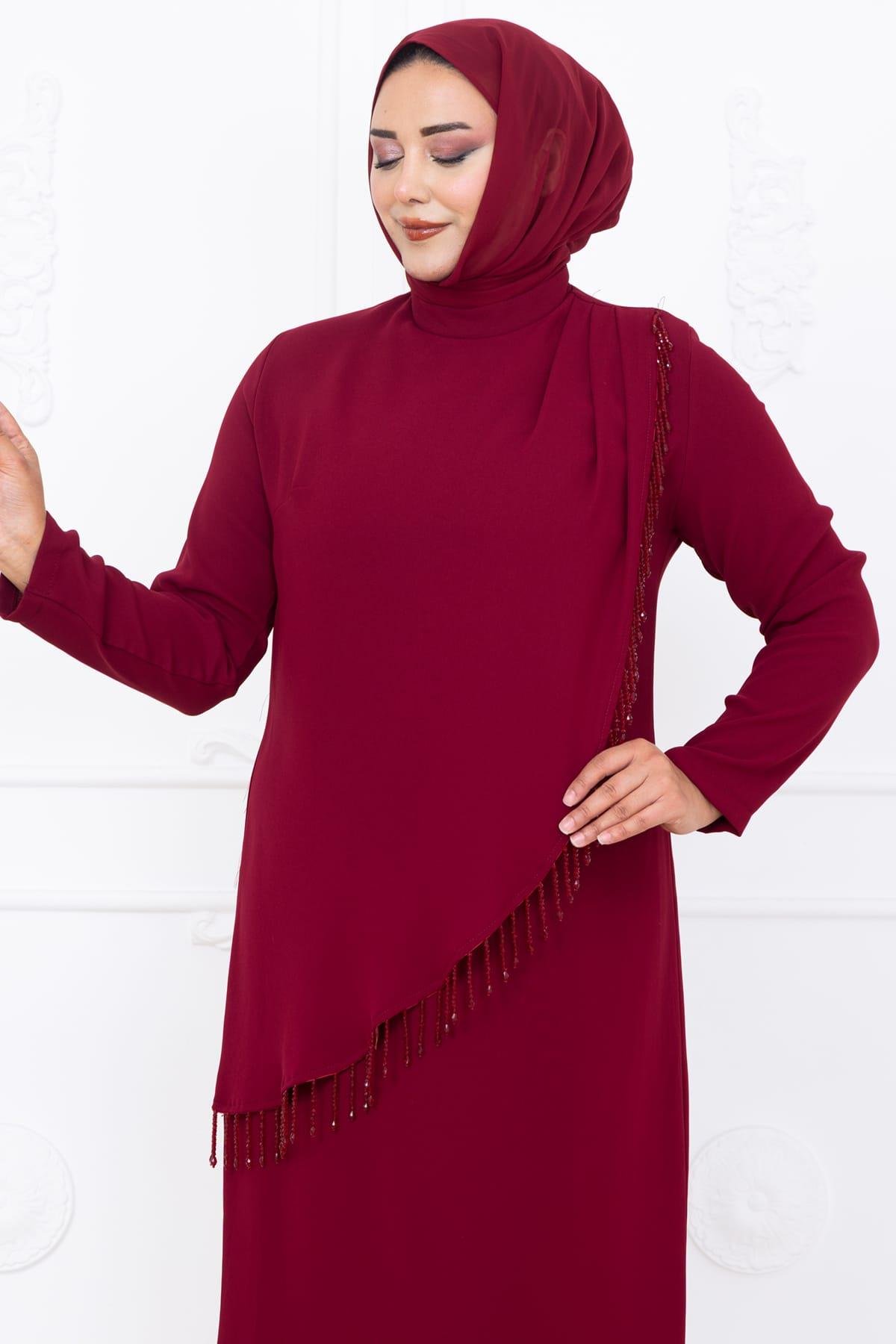Melek Tesettür Abiye Bordo