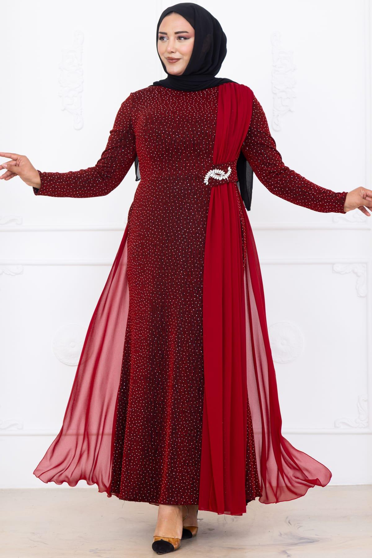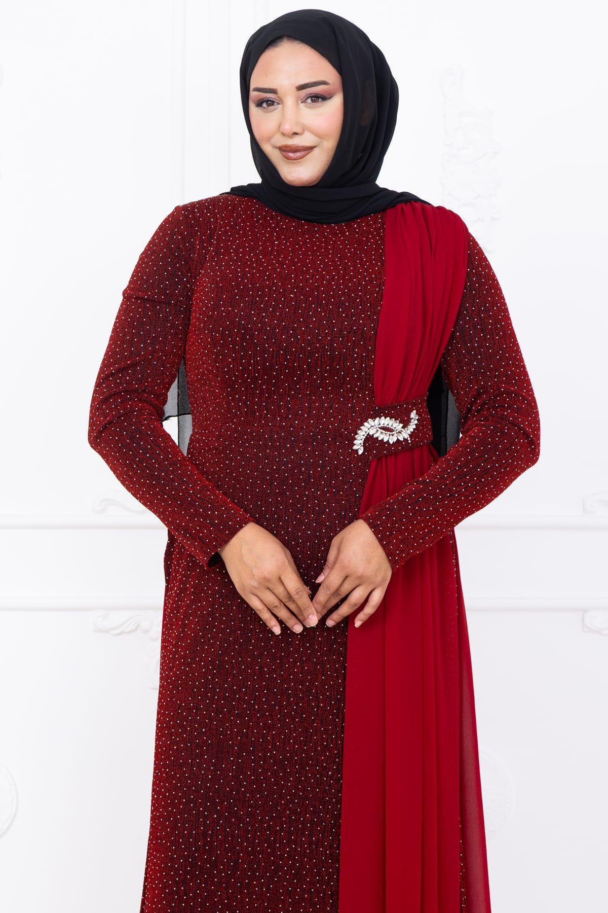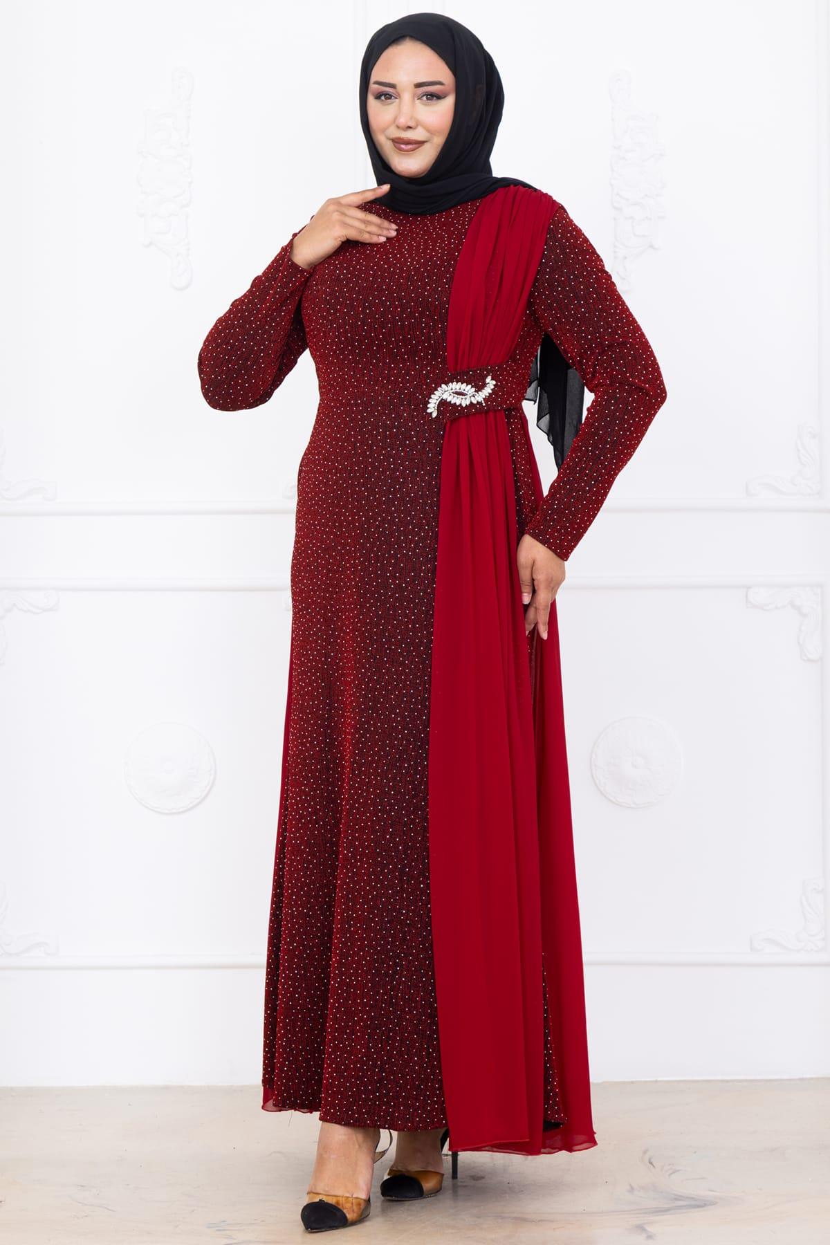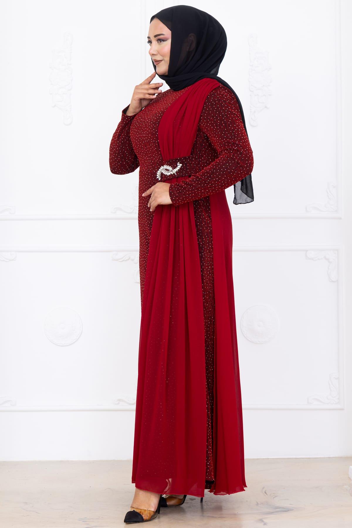 Nil Tesettür Abiye Bordo