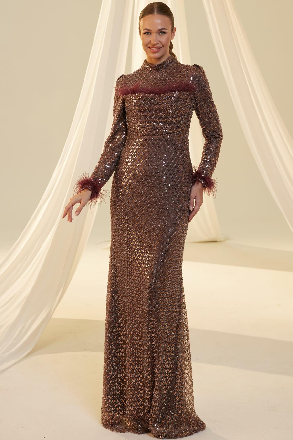 Perla Tesettür Abiye Kahve