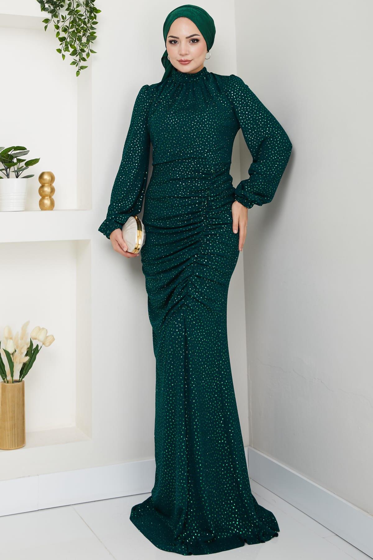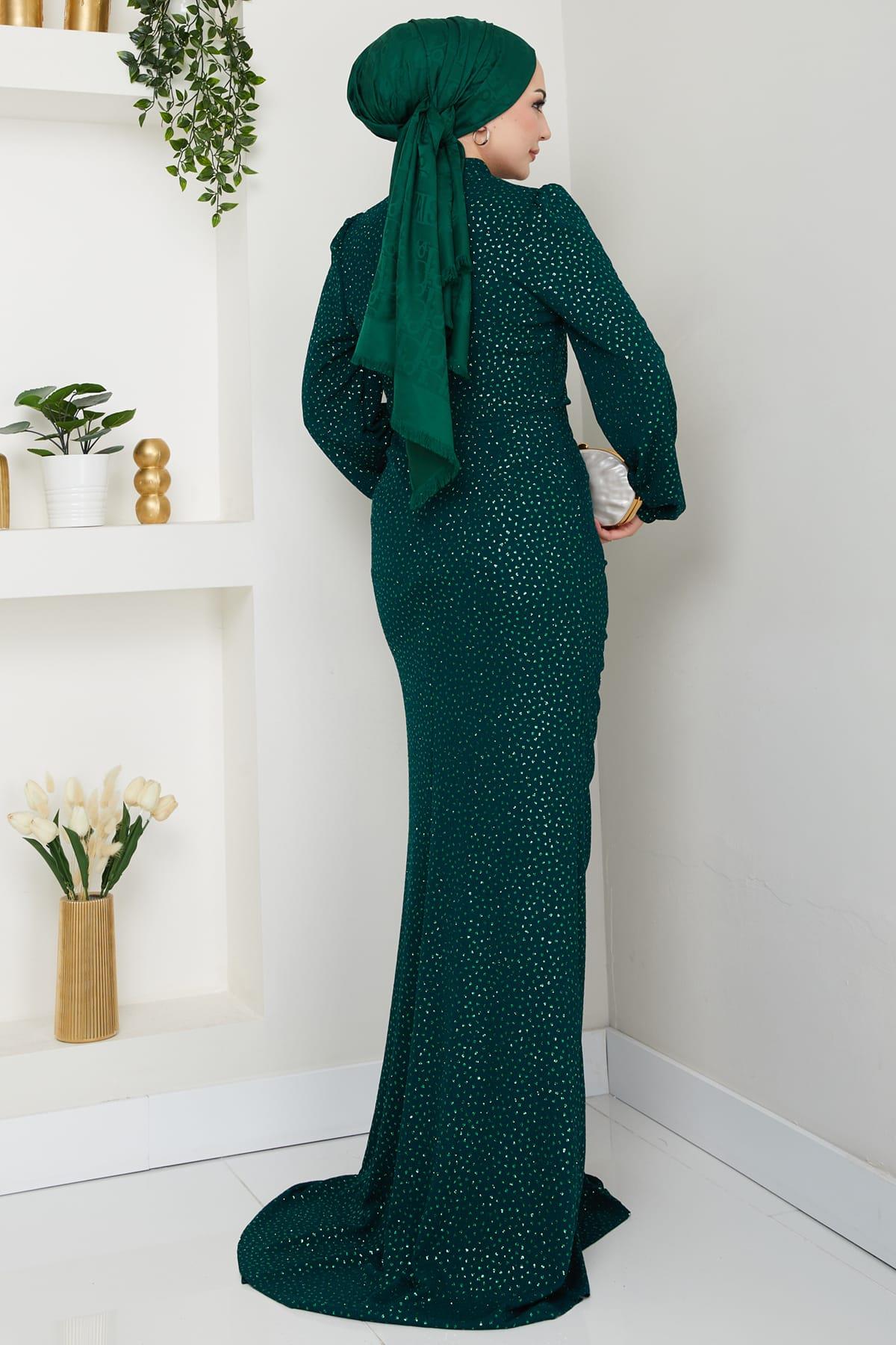 Puantiye Desenli Rüya Tesettür Abiye Zümrüt