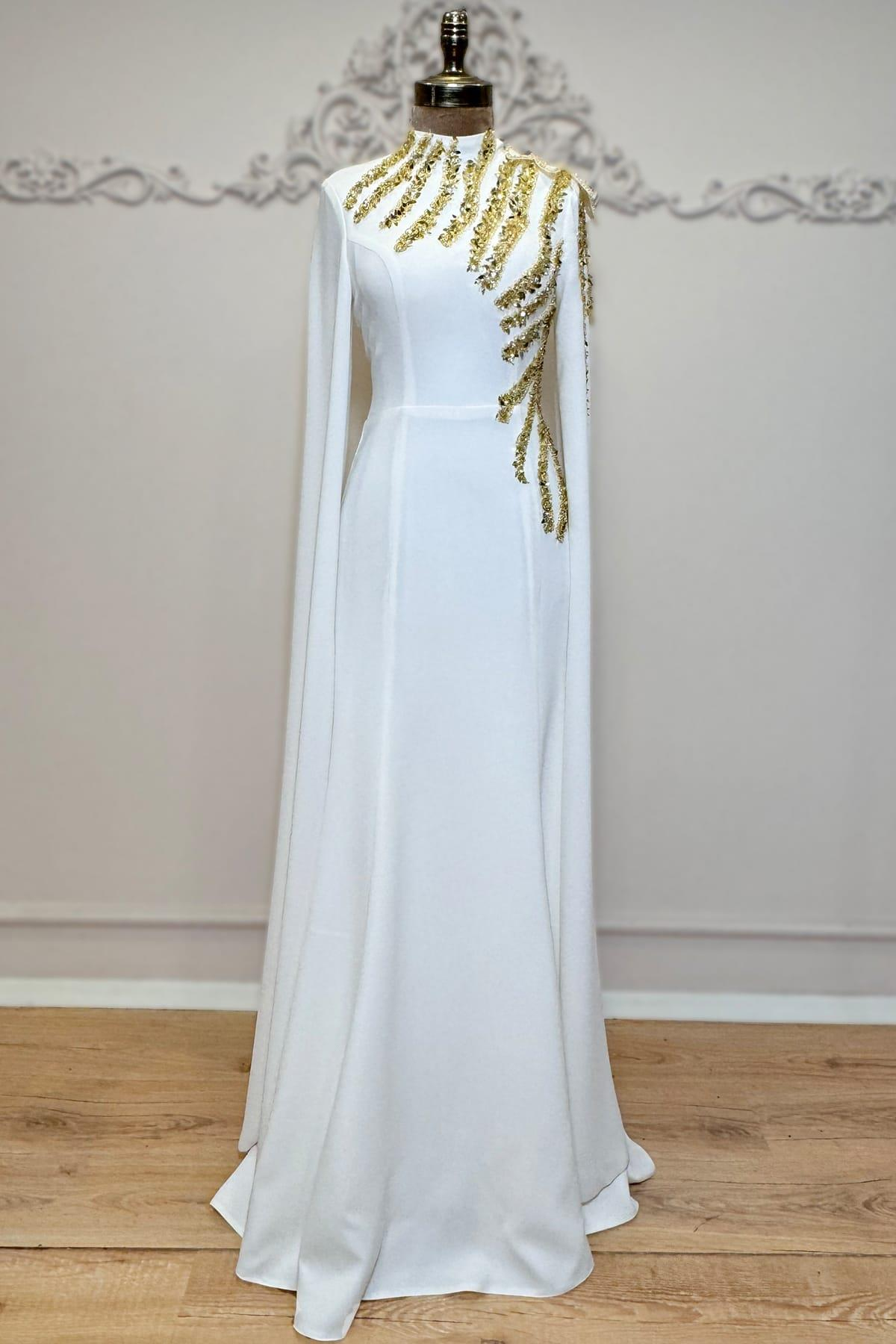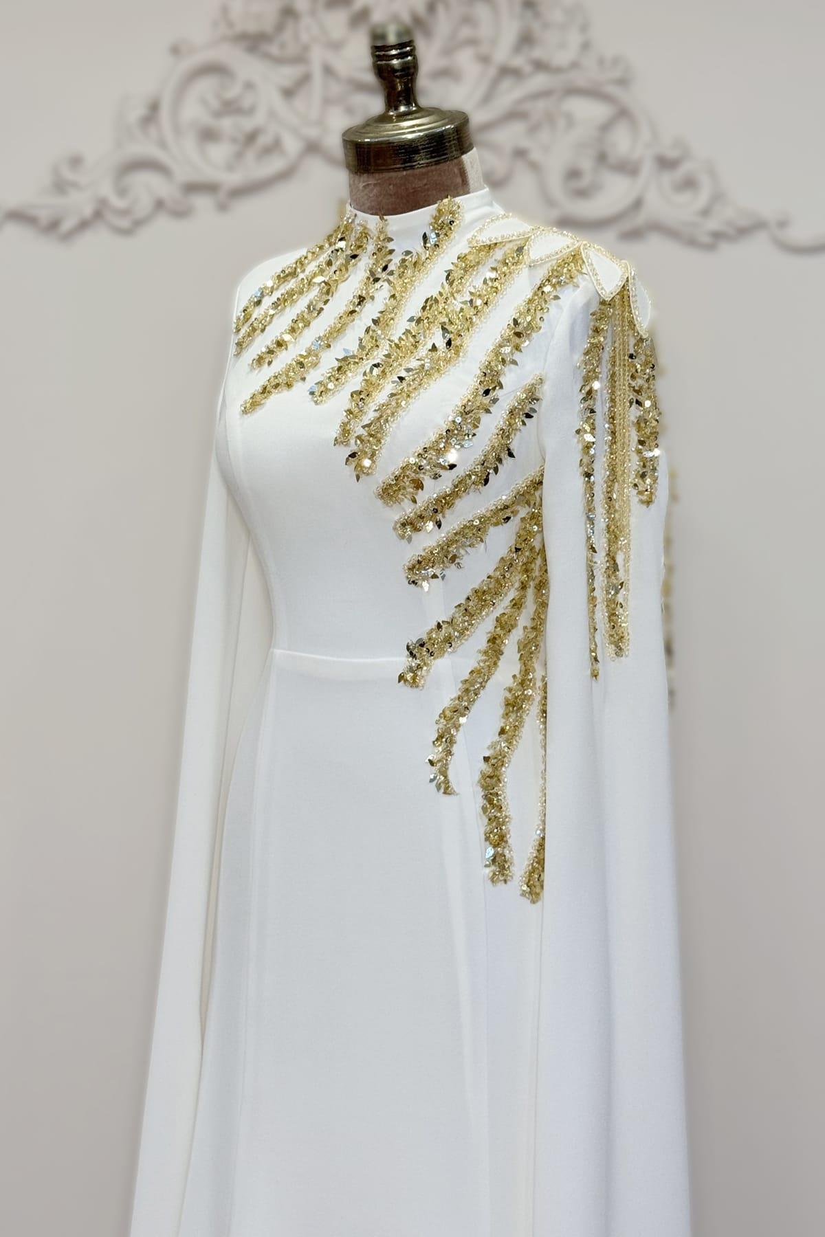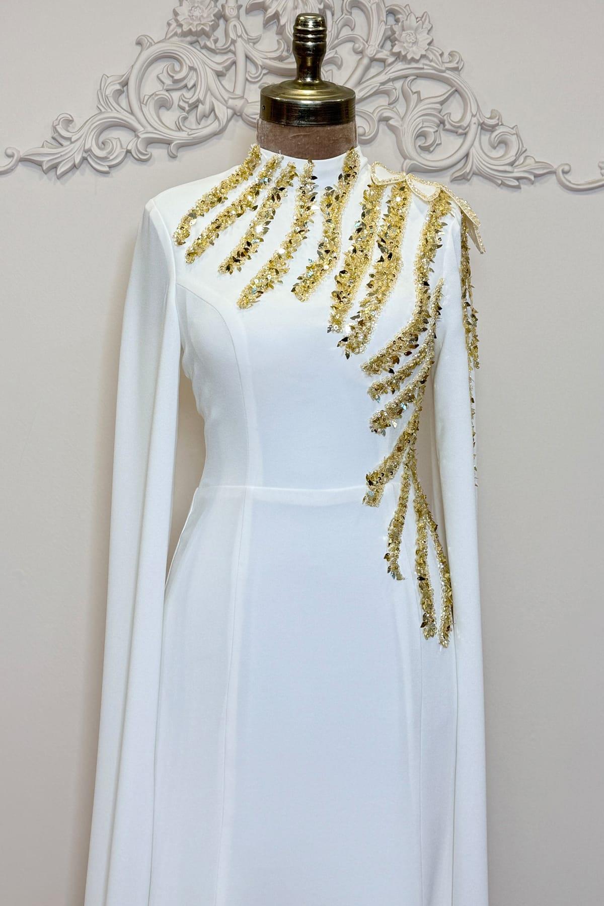 Salkım Tesettür Abiye Beyaz