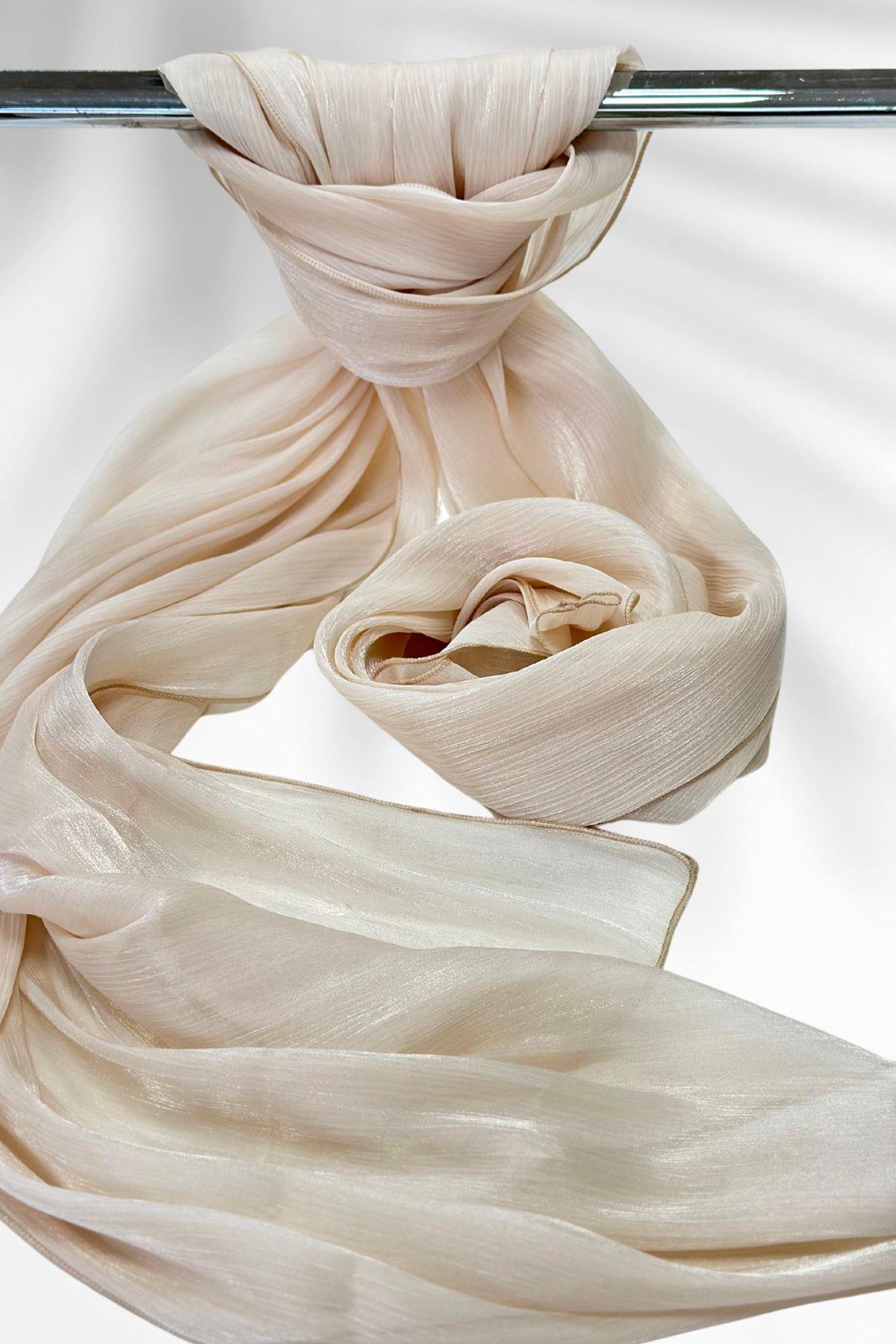 Saten Dokulu Janjan Abiye Şal 75x180cm Ekru Krem