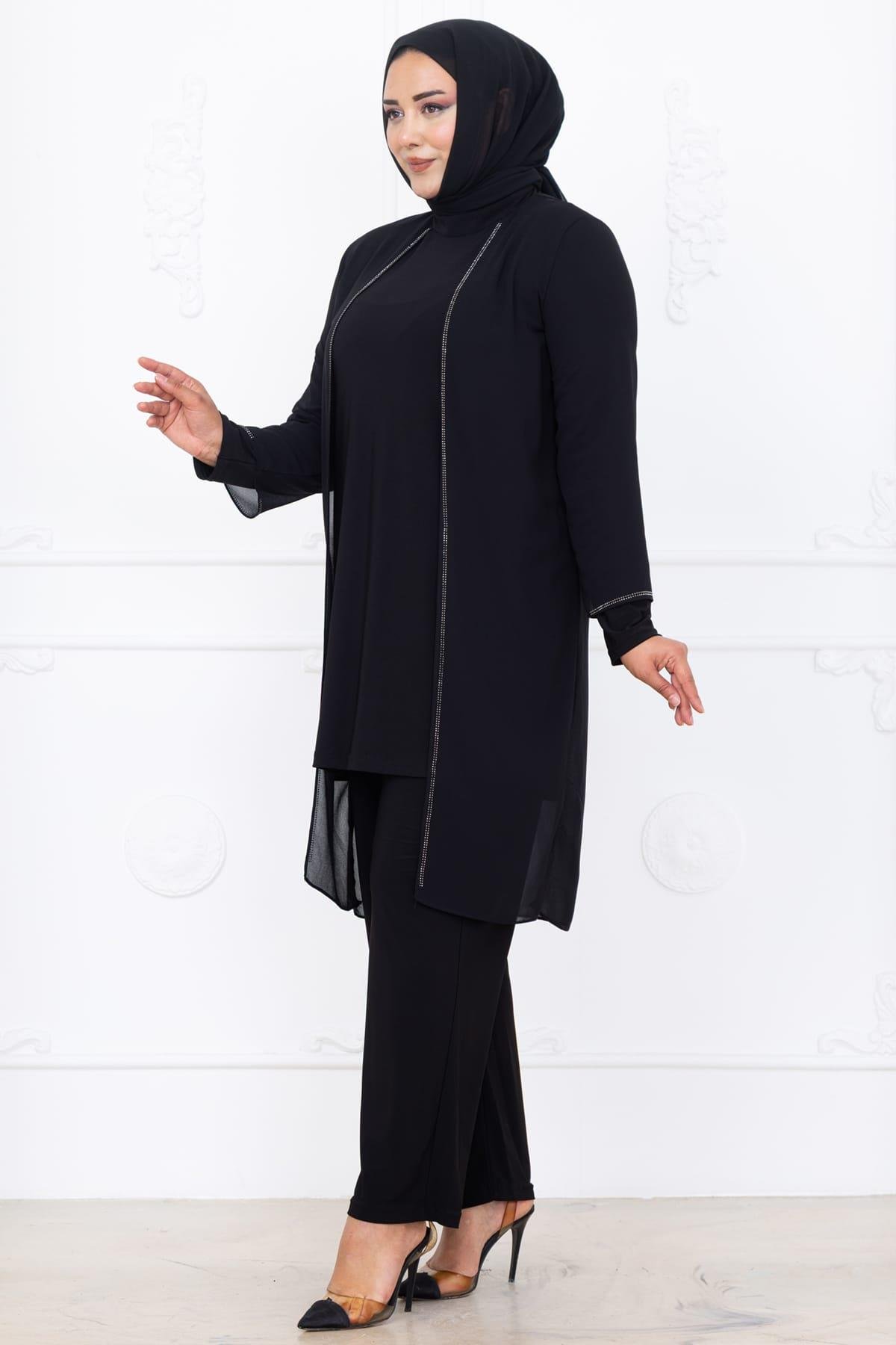 Sezen Tunik Pantolon İkili Tesettür Takım Siyah