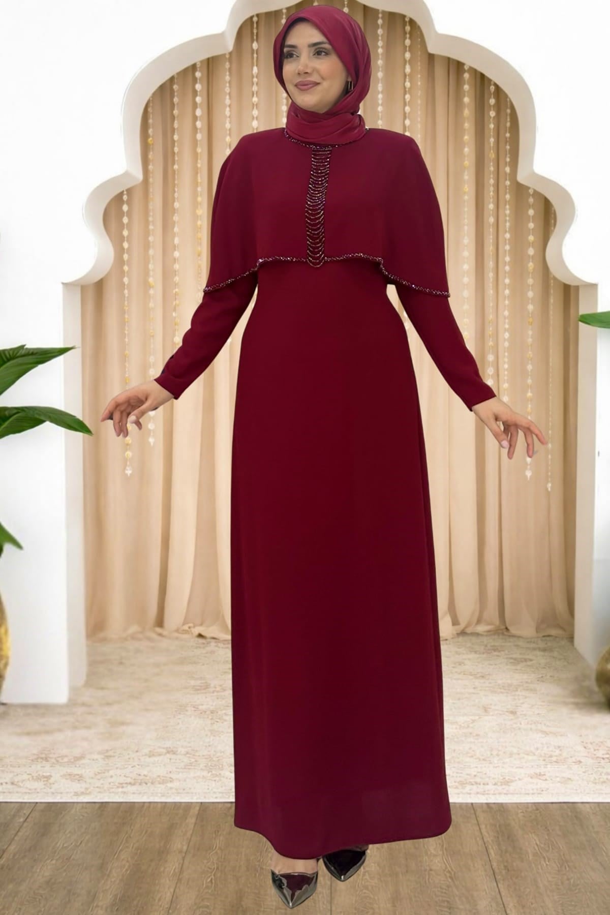 Sunay Tesettür Abiye Bordo