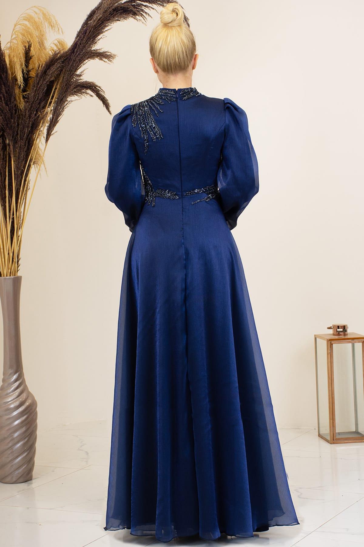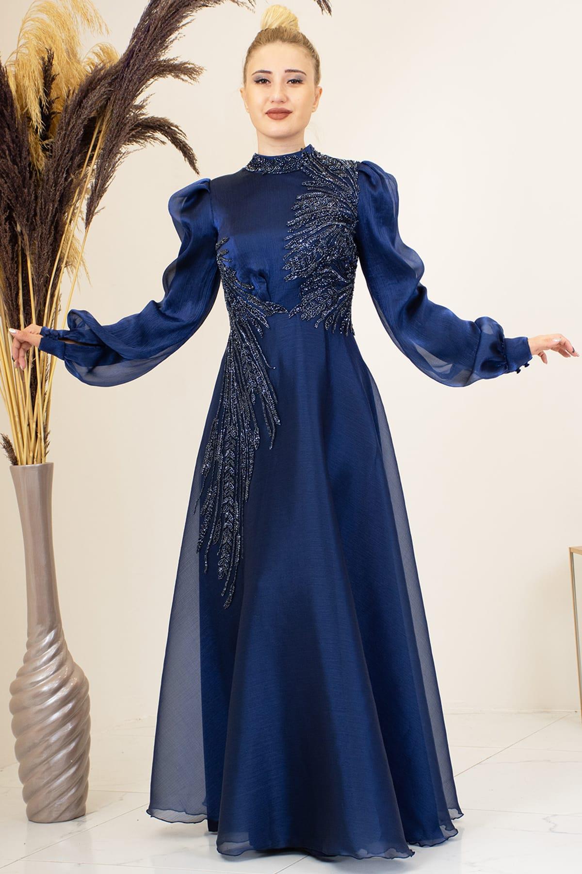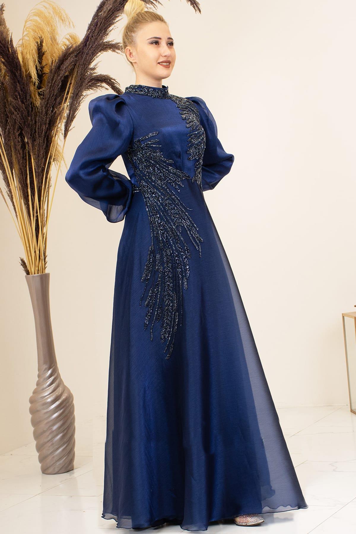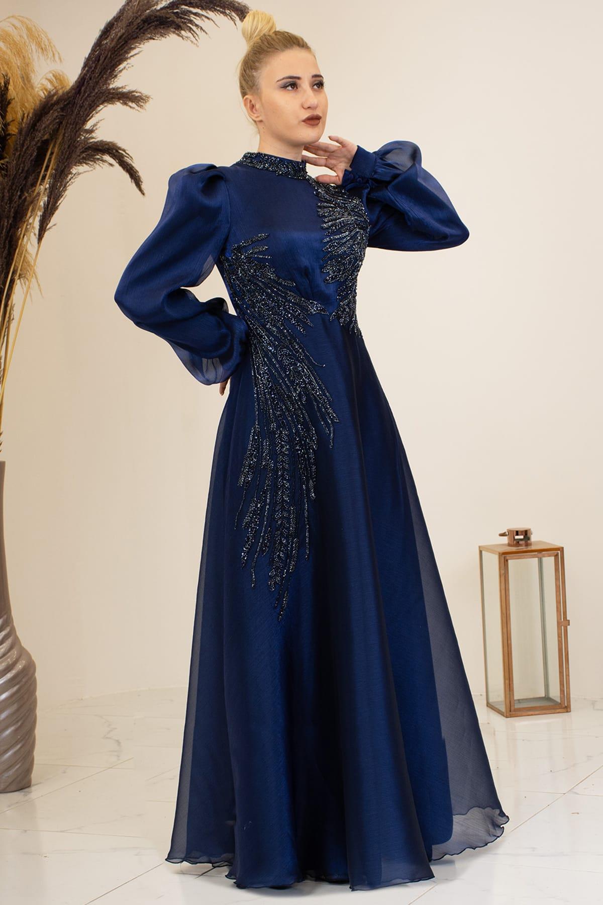 • Aksesuar: Aplik işlemeli, kloş, tam daire etek, hakim yaka, arkası gizli fermuarlı, içi astarlı abiye modeldir.